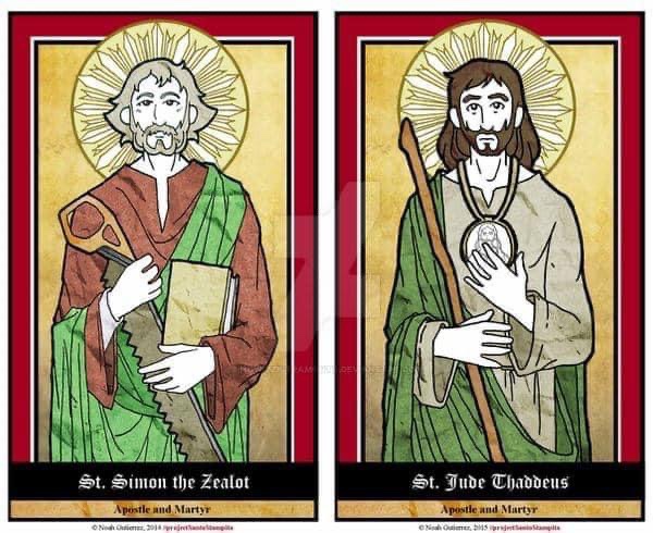 St. Simon the Zealot (sometimes called “Simon the Less” to distinguish him from Simon-Peter) and St. Jude (sometimes called “Jude the Obscure” because he is largely known for not being Judas Iscariot) were numbered in those first twelve apostles, saw Jesus post-resurrection, ate with him, and were sent out to preach the Gospel.