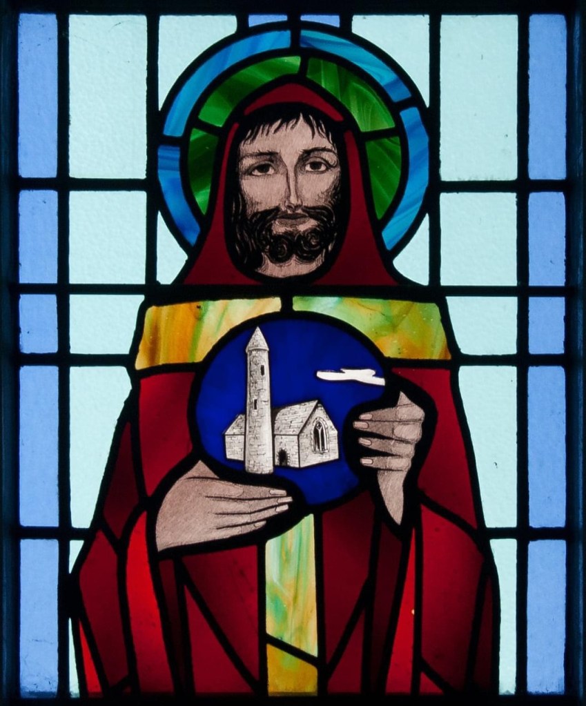 -stained glass icon written for Kilbennan St. Benin’s Church Window