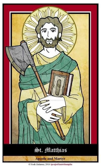 We know absolutely nothing about St. Matthias except for the brief account in Luke’s Acts of the Apostles where he is chosen by throwing dice as a replacement for Judas in the pantheon of Apostles. The early church felt it was necessary to restore the ranks to twelve, mirroring the tribes of ancient Israel. One wonders why they didn’t just incorporate Mary Magdalene into that position, as she was already performing the duties and fulfilled Peter’s qualifications for the role as a “witness to the resurrection,” but whatever. Patriarchy wins again, I guess.