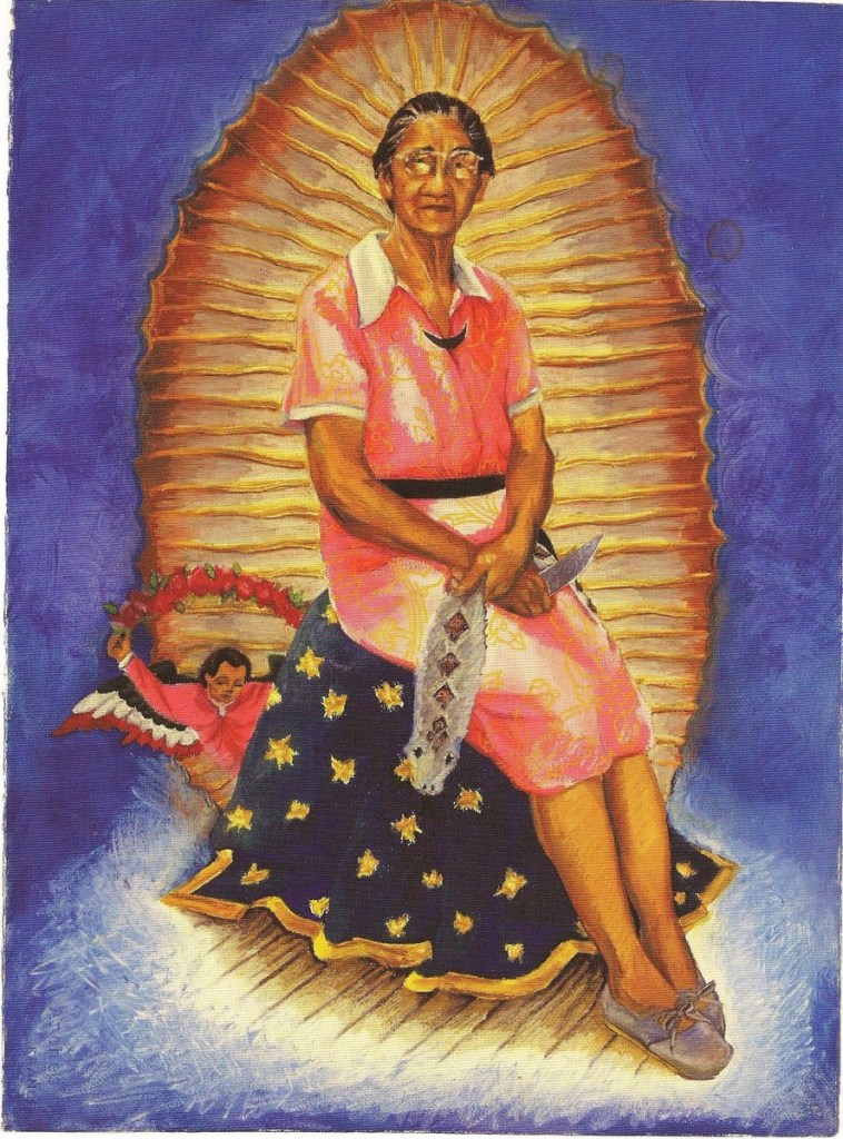 These three depictions, by artist Yolanda Lopez, flow not only from her heritage, but also from her work as a Mujerista Theologian. I find them both engaging and inspiring and, though they’re not traditional icons for this important Feast Day, they moved me.