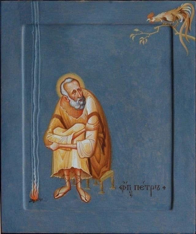 I chose this icon by Russian icon writer Oleg Shurkus for the day because I feel it’s most appropriate for where we are. This is obviously not of St. Peter’s confession, but in the aftermath of his denial and betrayal.