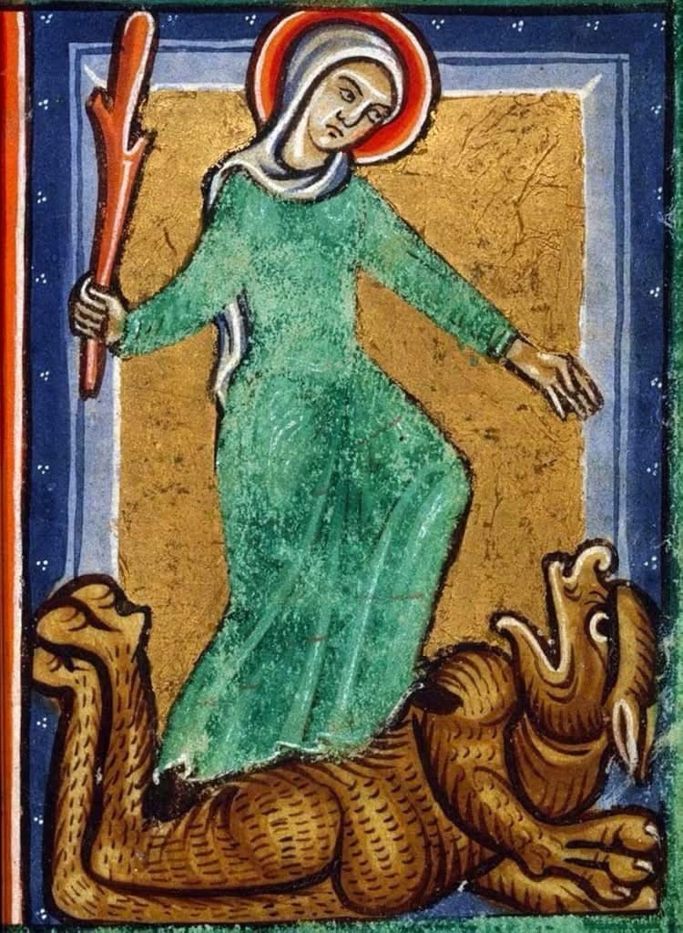 Today the church remembers one of the “dragon saints” who, in iconography, is often accompanied by a dragon (think of Saint Michael or Saint Margaret who also often have dragon companions/foes): Saint Juliana of Nicomedia, Patron Saint of Midwifry and Slayer of Dragons.