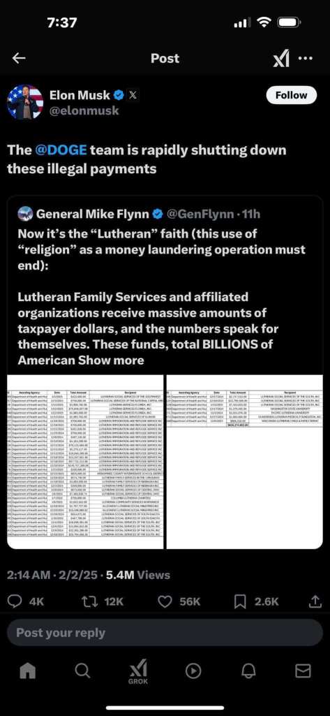 A post then affirmed and doubled-down on by the supreme ruler of Department of Government Efficiency (a government “department” in the same way that a “closet” is a “room”…in other words, not really the same thing) Elon Musk.